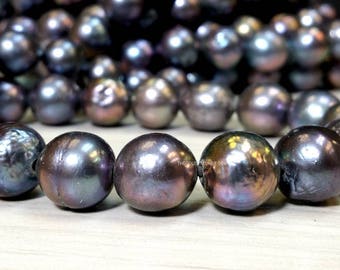 Black Pearl 15.5 Inch 12 to 14 mm. Large Hole Freshwater Pearl Baroque Beads 2.1 mm Peacock (ET0910NW120)