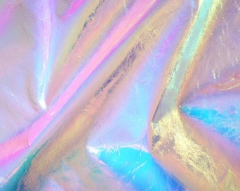 Super Iridescent Crinkled Hologram Metallic Lambskin Sheepskin Holographic Genuine Leather Skin