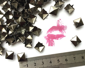 100pc 4 PRONG Pyramid Studs. Avail. in Multiple Sizes/Finishes. Pls see drop down menu.FAST Shipping w/ Tracking for US Buyers. 10mm in Pic.
