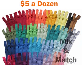 YKK Zippers for 12 - Choose Your Colors Zippers - Mix & Match YKK Nylon Zippers - 4" 5" 6" 7" 8" 9" 10" 12" 14" 16" 18" 20" 22"