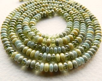 Sage Green Czech glass donut bead mix, Rondelle glass bead mix, 4mm, Sage Green glass bead mix (100pcs) NEW