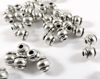 50 Silver Barrel Spacers Antique Tibetan Style Lantern Beads 4.5mm LF/CF - 25 pc - M7069-AS50