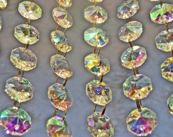 14mm Octagon Aurora Borealis AB Chandelier Drops Glass Crystals Crafts Parts Droplets Deco Beads Christmas Tree Wedding Decorations Garlands