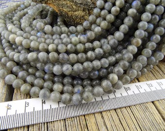 6mm Labradorite Beads, Labradorite Gemstone Beads, Gray Beads, Blue Flash beads 6-6.5mm Beads, Natural Labradorite, Medium Gray Beads