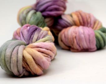 Hand dyed yarn thick and Thin Yarn hand spun merino "Dried Petals", knitting yarn, dollmaking, weaving, crochet