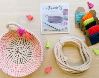 Coil rope bowl tutorial and materials. Woven rope basket making kit and instructions DIY