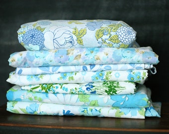 Vintage Sheet Fat Quarter Bundle - Aqua/Light Blue Floral Mix - Set of 7