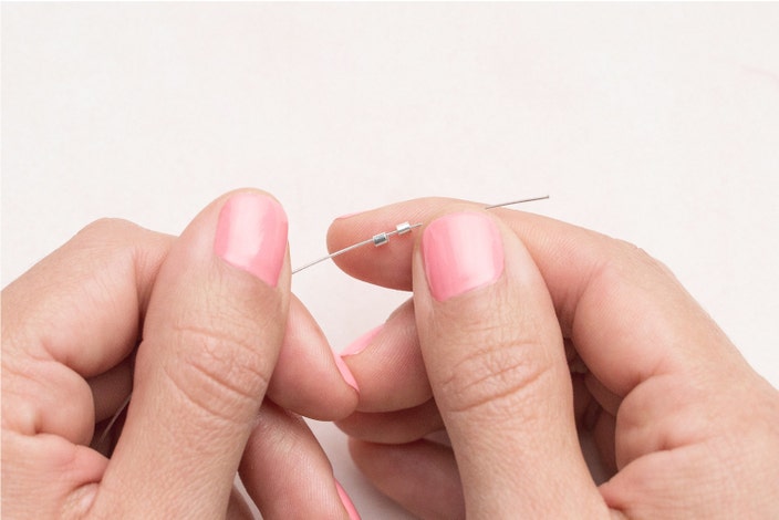 Use flush wire cutters to cut 24 in. / 61 cm of wire. Next, thread on 2 crimp tubes.