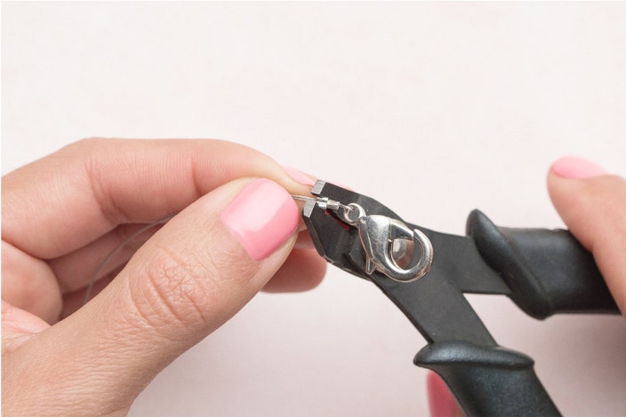 Use your crimp pliers to flatten both crimp tubes as you did in Step 3. Trim excess wire.
